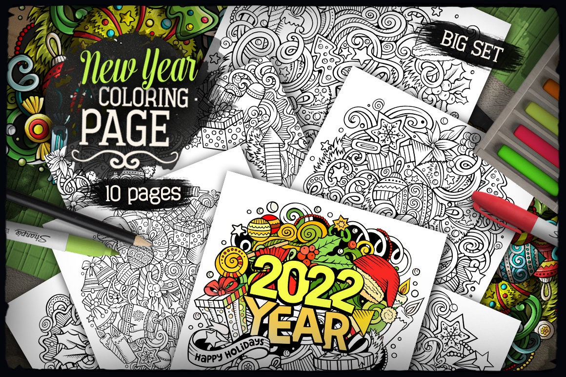 New Year Coloring Pages, 40 Printable Happy New Year 2022 ... New Year Coloring Pages, 40 Printable Happy New Year 2022 Coloring Pages - Coloring Pages To Celebrate The Upcoming New Year 2022 For Kids, Boys, Girls, Teens. This adorable set of New Year Coloring Pages is the perfect activity for a new year party! This listing is for all 40 New Year Coloring Pages that are shown in the photos.